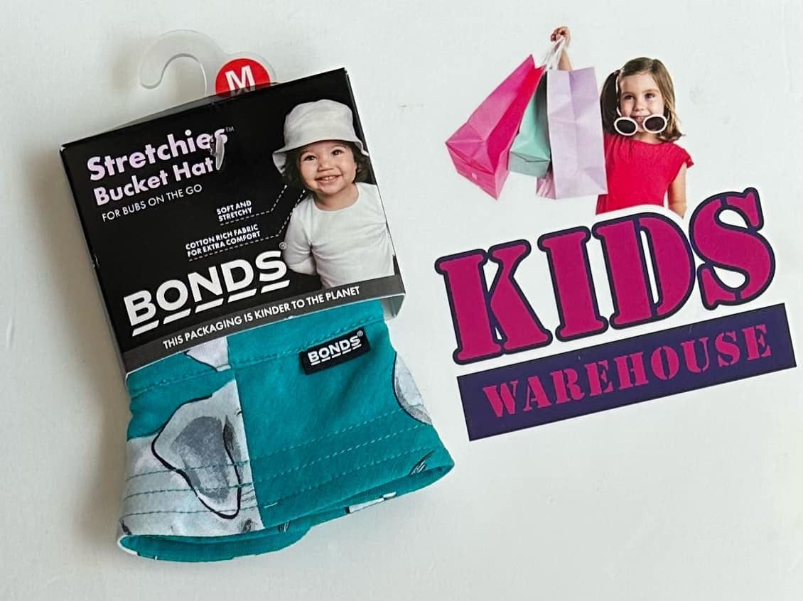 Bonds Stretchies Bucket Hat Turquoise Elaphant Print Size 00