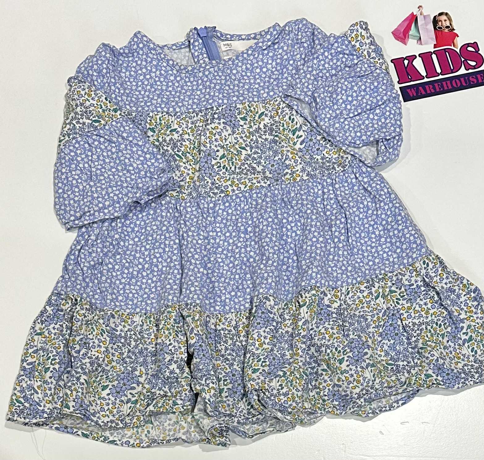 Marks & Spencer Blue Dress With Flower Pattern Size 3-4