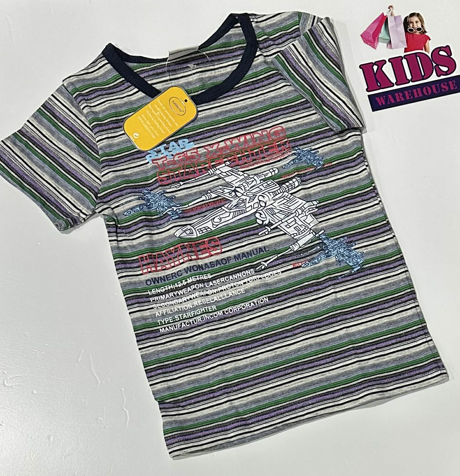 New Ajiduo Grey, Green & Purple Top With Spaceship Print