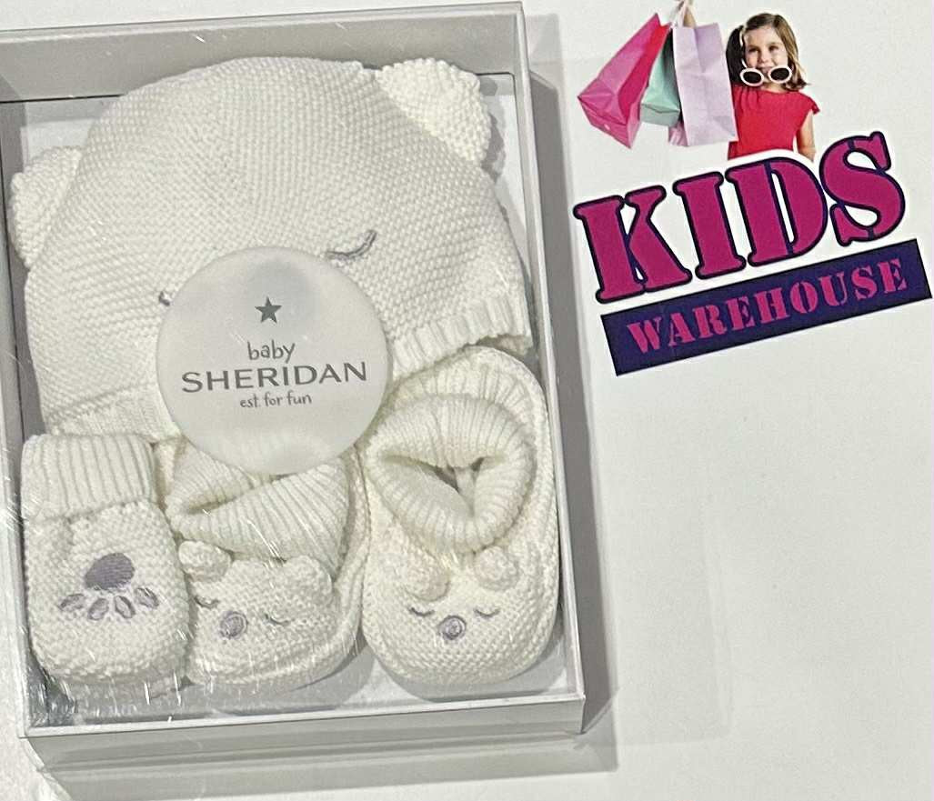 NEW Baby Sheridan White Knitted Beanie, Mittens, Socks