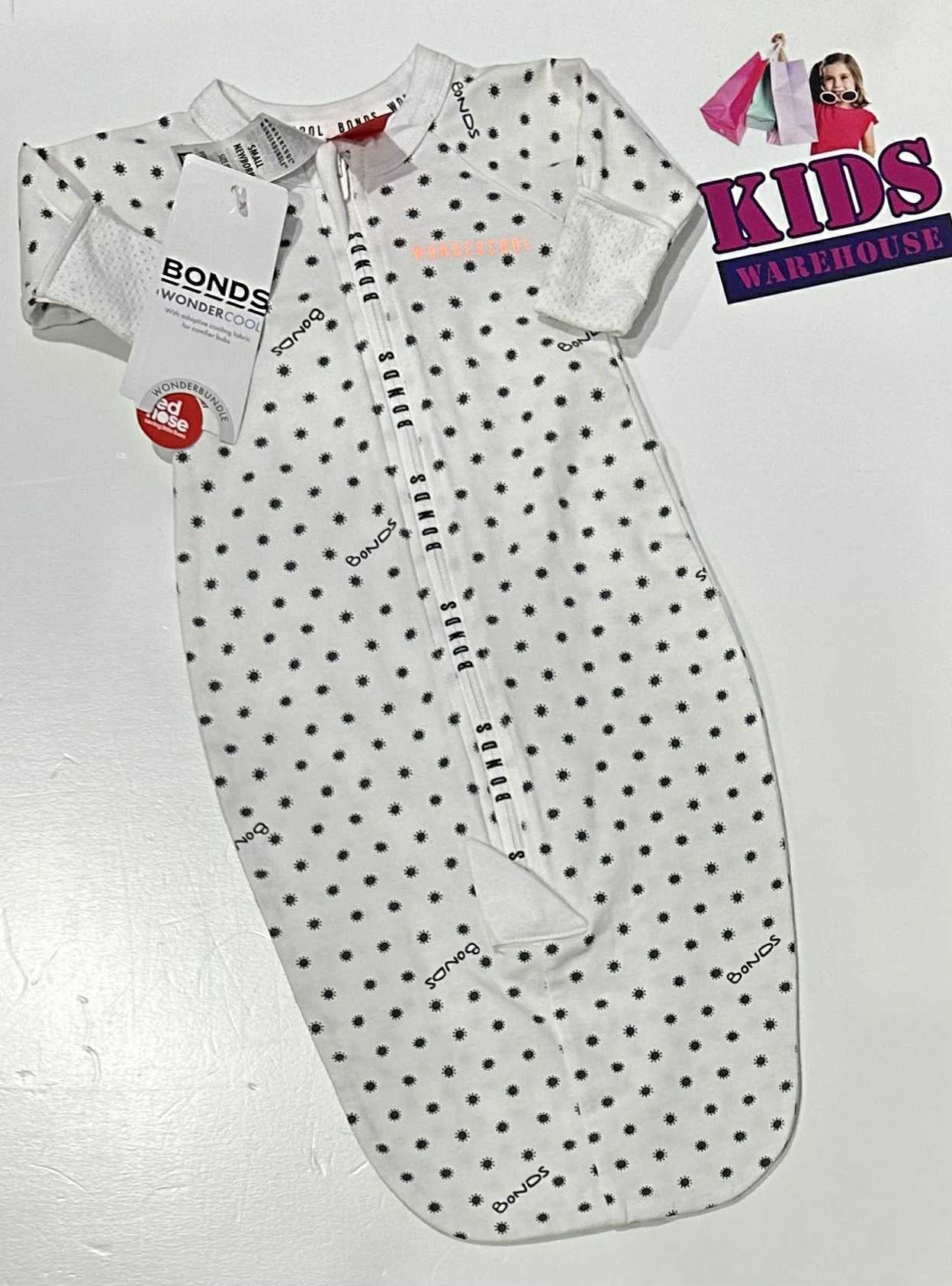 NEW Bonds Wondercool White, Black Polka Dot Print Size 00000 (Small Newborn) RRP $44.95