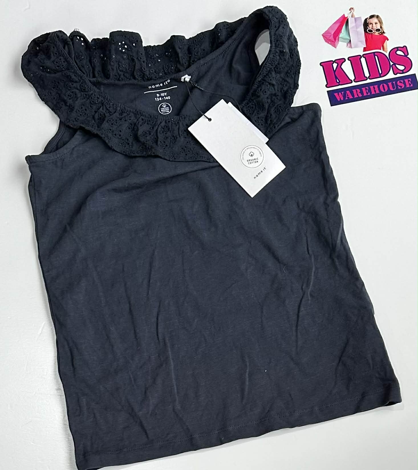 New Name It Black Top With Flower Pattern Sleeves Size 9-10