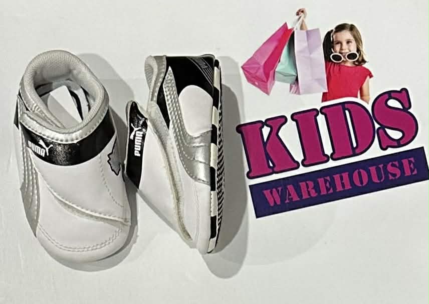 Puma White, Silver, Black Runners Size US2/UK1 (Baby/Toddler)