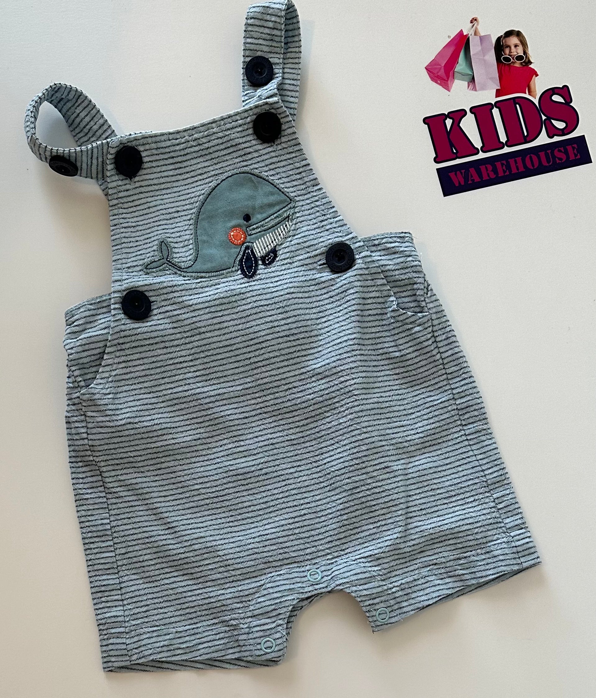 Pumpkin Patch Whale Print Striped Overalls Size 00