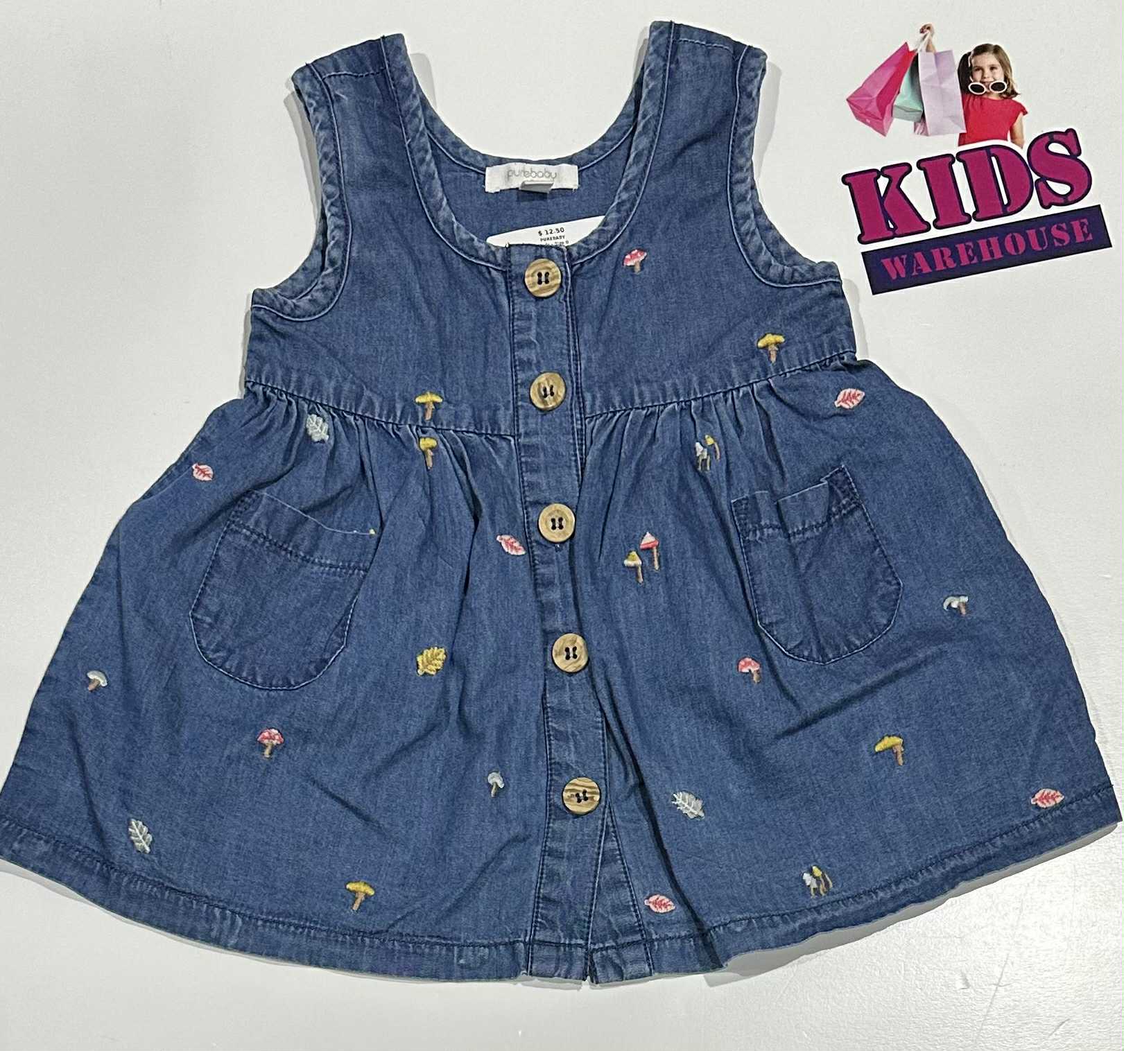 PureBaby Blue Dress With Leaves & Tree Pattern Size 0