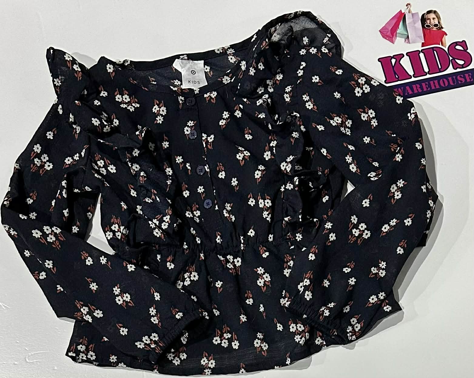 Target Black Long Sleeve Top With White Flower Pattern Size 5