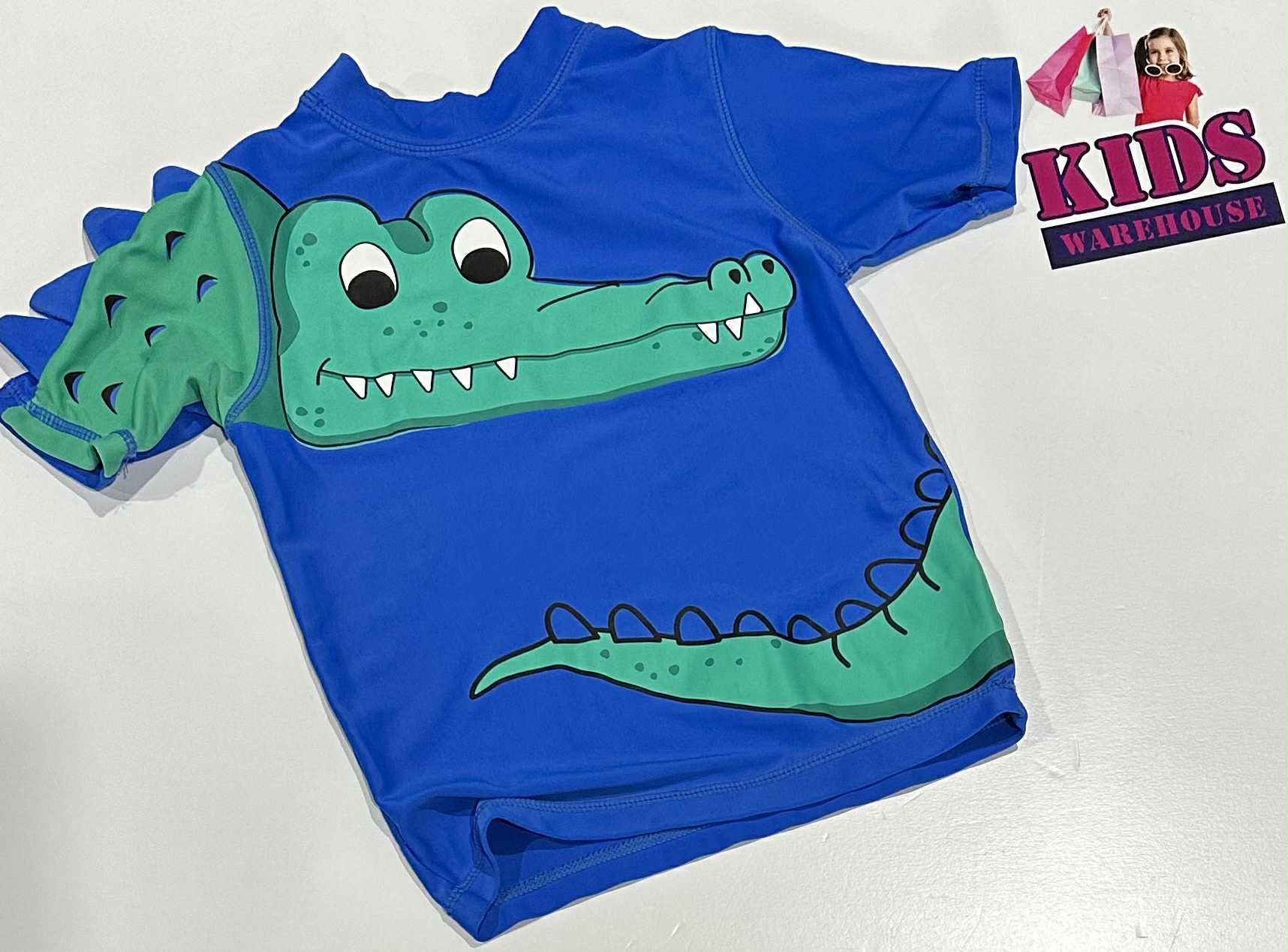 Wave Zone Blue Swim Top With Green Crocodile Print Size 2